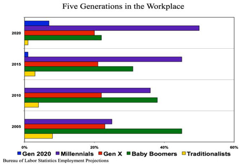 What a crystal ball moment that was! For the first time in history, we are dealing with a global workforce represented by all five generations: Traditionalists, Baby Boomers, Generation X, Millennials, and Nexters.Contrary to the popular narrative of soon to be Millennial domination, organizations are still required to cater for the other generational composites forming part of company headcount figures.